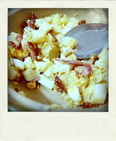 突然想吃馬鈴薯,超市買了一顆,搭配冰箱所剩無幾的培根,簡單的煮了這道料理。